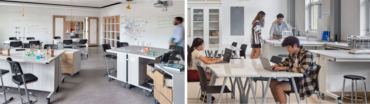 Electrical outlets on the top or sides of the workstations support laptops, tablets, and other devices, allowing students to easily engage with digital resources.