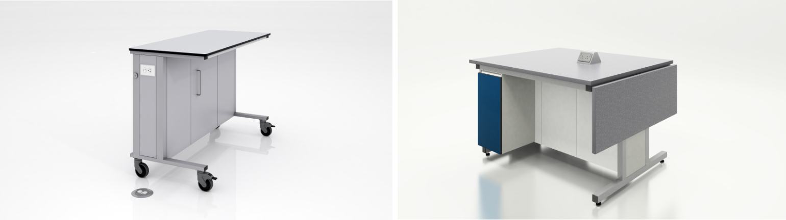 The 4 student workstations offer storage options, helping to keep the lab organized and ensuring quick access to tools and materials. A drop leaf provides additional workspace and seating positions.