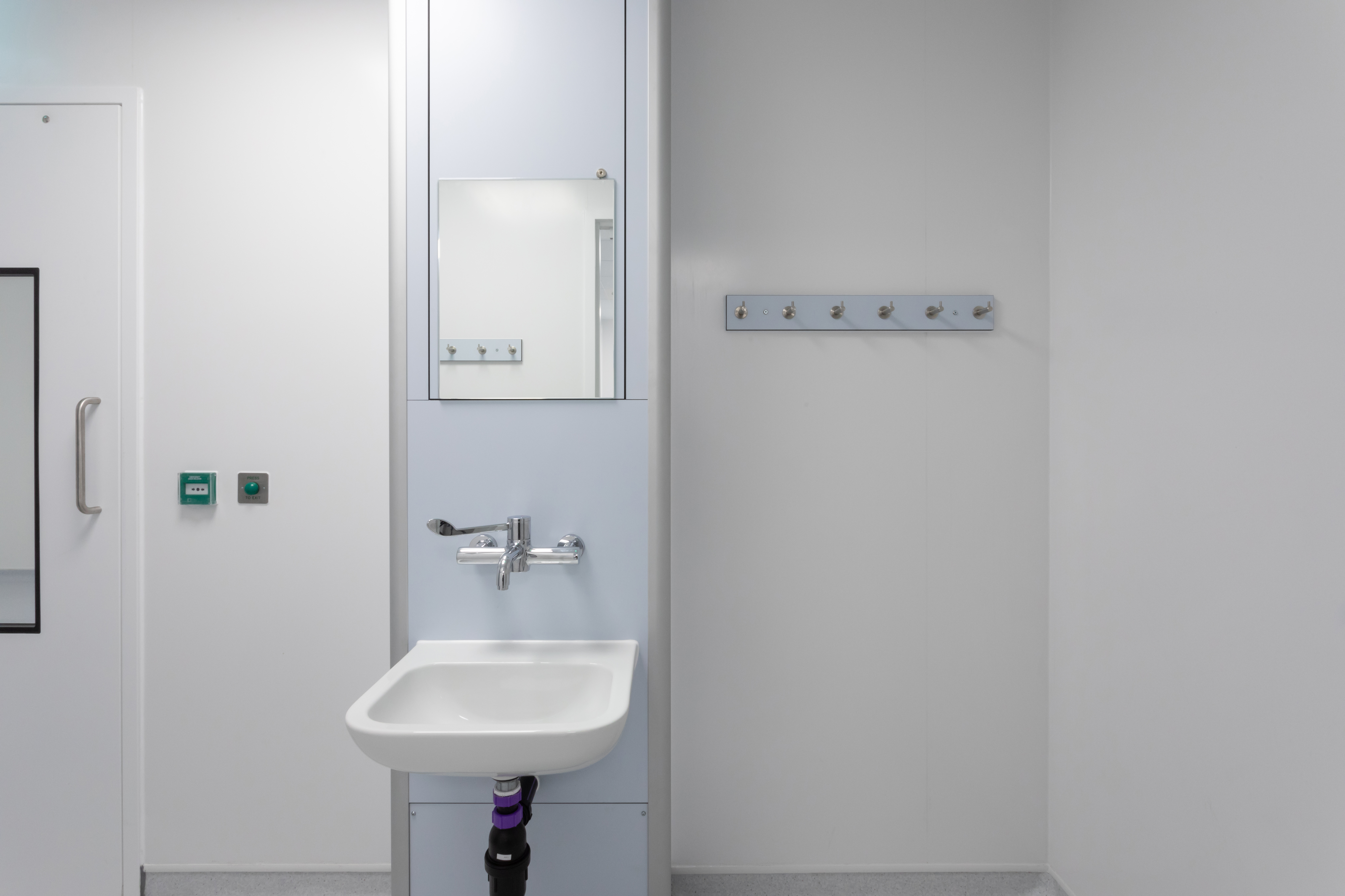 The chosen palette of light colours, combined with both natural light and clever lighting make the laboratories feel airy and spacious, while elements such as stainless steel sinks, chrome finish taps and door handle give a contemporary and smart feeling to the working spaces.